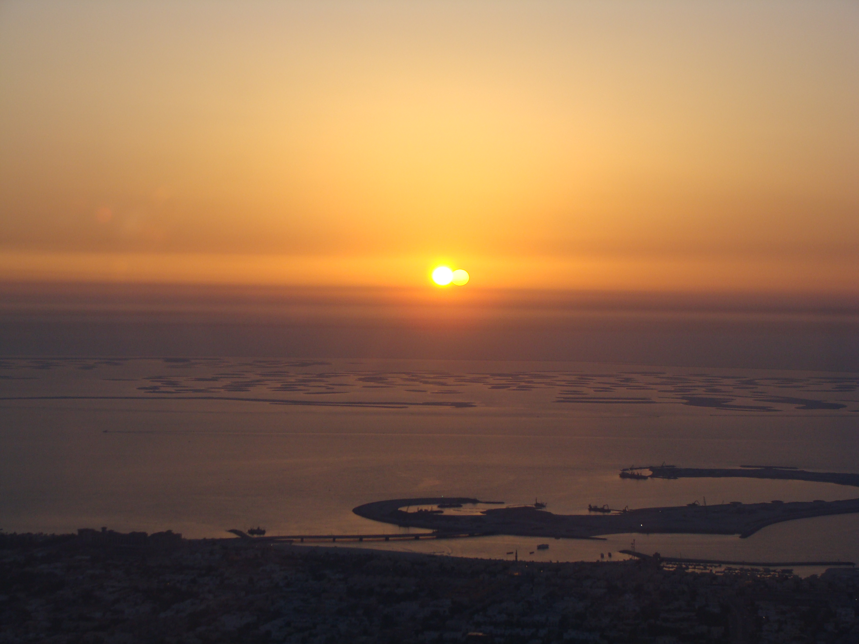 Vue de la Burj al khalifa : The World coucher de soleil